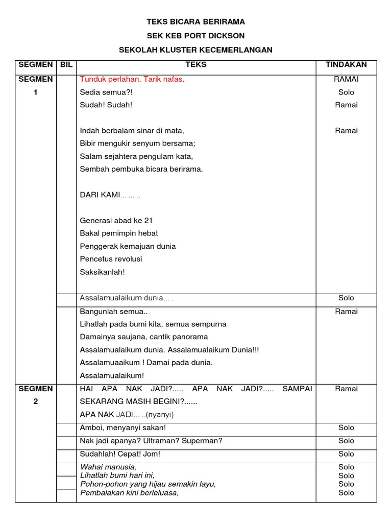 Skrip Bicara Berirama Keluarga Bahagia from imgv2-2-f.scribdassets.com Lalu apa yang disebut terlambat bicara? Solo tanah runtuh dan banjir di cameron highland, ini berpunca daripada penebangan pokok secara haram. Pemenang skrip terbaik kebangsaan 2018. Alam semesta ini adalah tempat tinggal bagi manusia maupun makhluk hidup lainnya. Bicara berirama sekolah menengah kertas konsep. Kejayaan negara diukir dengan tinta emas bersinar berkilauan bintang berkelipan serata alam nama jadi sebutan wajah jadi igauan datuk lee. Pengalaman ini tidak kukarang sendiri tapi berdasarkan cerita asli yang kualami di tahun 2001 ini. Pasukan bicara berirama negeri melaka yang diadakan di mh hotel, perak.