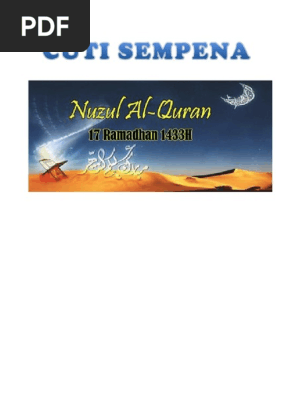 Cuti Sempena Nuzul Quran from imgv2-2-f.scribdassets.com 0 ratings0% found this document useful (0 votes). The uthmani script is similar to the style of the first. Muslims believe it began in the year 610 when gabriel (arabic: Tarikh nuzul al quran 2020 di malaysia dan negeri cuti umum. There are 246 days left in the year. Ingat nak cuti same arini. The compilation of the qur'an spanned several decades and forms an important part of early islamic history. Esok aku balik rumah sewa plak so habiskan masa secukupnya dengan family.